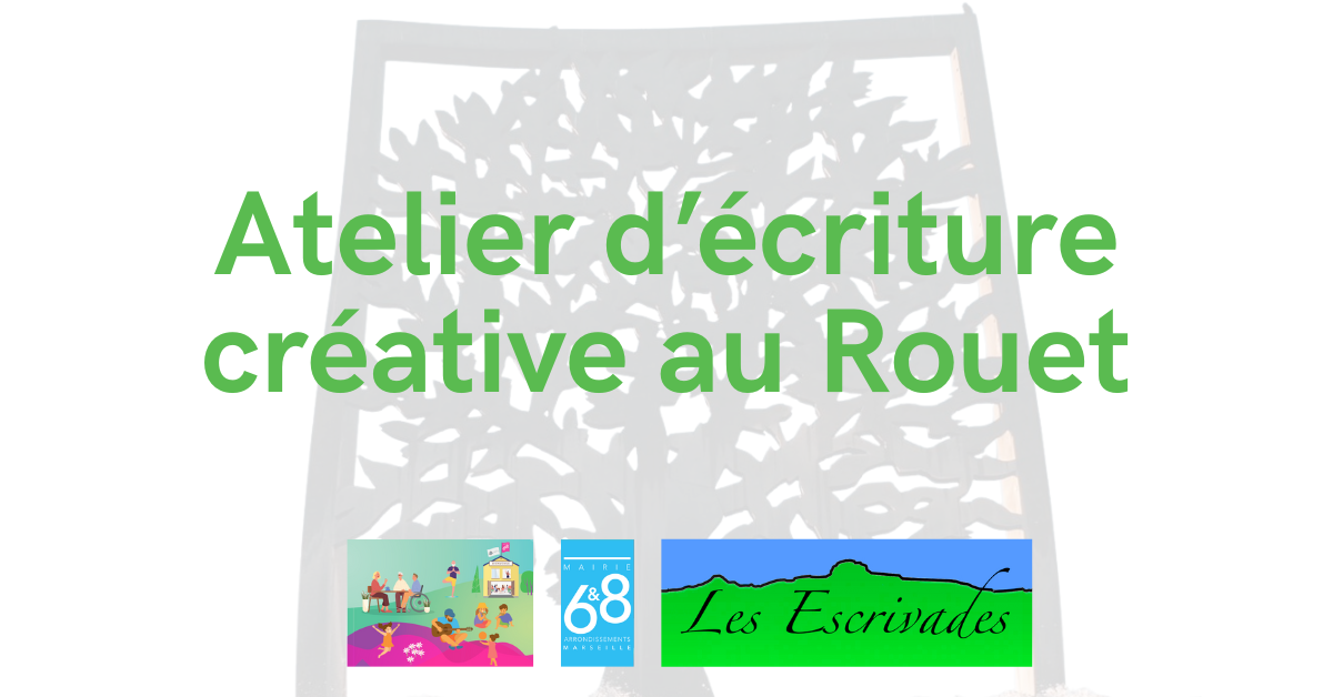 | Parce qu’une proposition d’écriture amène souvent là où on ne serait jamais allé et fait progresser… Parce que partager son texte donne du sens et de la valeur à ce qu’on écrit… Parce que, sans ces rendez-vous, faire de la place à notre créativité dans notre quotidien n’est pas toujours simple… S’offrir une parenthèse d’écriture, deux fois par mois, n’est pas du superflu. A partir de photos, tableaux, textes d’auteurs ou étincelles en tous genres, l’atelier du Rouet fait feu de tout bois pour allumer la flamme de votre imagination. Nous partirons dans un premier temps à la découverte des lieux fictifs ou réels qui nous inspirent, pour rencontrer ensuite les personnages tapis dans des recoins, et nous finirons l’année par des escapades fictives, qui nous ressemblent et nous rassemblent. Les ateliers ont lieu deux mercredis par mois de 18 h à 20 h. Inscription à l’année ou au trimestre en suivant ce lien : https://www.helloasso.com/…/atelier-d-ecriture-du-rouet… Centre Municipal d’Animation, 7 rue Benedetti 13008. Métro Périer – Bus 73 – Stationnement aisé dans le quartier. Atelier d’essai le mercredi 17 septembre 2025 à 18 h (12 € récupérables), puis inscription à l’année (180 € les 18 ateliers de deux heures) ou au trimestre (66 euros les 6 ateliers). Renseignements : info@lesescrivades.fr / Tél. 06 74 65 53 30 Retrouvez-nous sur www.lesescrivades.fr – Facebook lesescrivades |